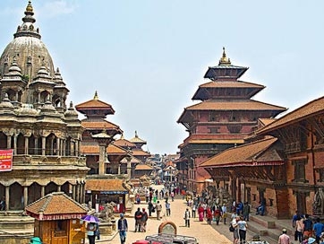 Wake up early to witness the mesmerising experience of sunrise from Nagarkot. After breakfast check out from your resort and you will once again check in to your hotel at Kathmandu. Then we will take you for the sightseeing of Kathmandu. Your first destination is famous Durbar (Royal Palace) square. After the major earthquake of 2015 tourists can only see the remains of once iconic structures of Durbar Square. There are three Durbar squares in Kathmandu valley, this one is among one of them. This is also known as Hanuman Dhoka Palace Complex. Witness the remains of once Royal Nepalese residence. Your next destination is Swayambhunath. Even after the massive destruction there are many destinations around Kathmandu which has survived with minimal damage like Swayambunath. Swayambunath situated on a hilltop at a distance of 2 km on the west side of the Kathmandu valley is the oldest iconic religious structure of Kathmandu and one of the most sacred Buddhist pilgrimage site. Built in 5th century Swayambunath of Nepal is a Buddhist complex which is also known as Monkey Temple. In the complex you will find Stupa, shrines and temples. This place is also sacred for Hindus. After having lunch we will take you to Patan. Lalitpur city, historically known as Patan is located at a distance of 7 km from Kathmandu will take around 20 minutes to reach by road. The beautiful city of Lalitpur is a sister city of Kathmandu separated by the Baghmati river. For its substantial architectural masterpieces Lalitpur or Patan is a must visit place on your list. The central Durbar square of Patan is packed with lot of temples. One of the most important temples to visit here is the Krishna Mandir (Temple). Built by King Siddhinarsingh Malla in 1637 Krishna temple is made of stone. Other important and must visit temples over here are Golden temple, Manga Hiti, Jagannarayan temple, Viswanath temple and Bhimsen temple. After visit to Patan city you will be taken back to your hotel at Kathmandu. You are free for rest of the day to take rest or else to stroll around. Stay overnight at Kathmandu.